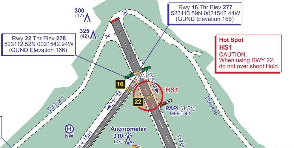A hot spot has been identified at the runway holding point position for runway 22, located on runway 34. This is due to the risk of over running the holding point resulting in a runway incursion.